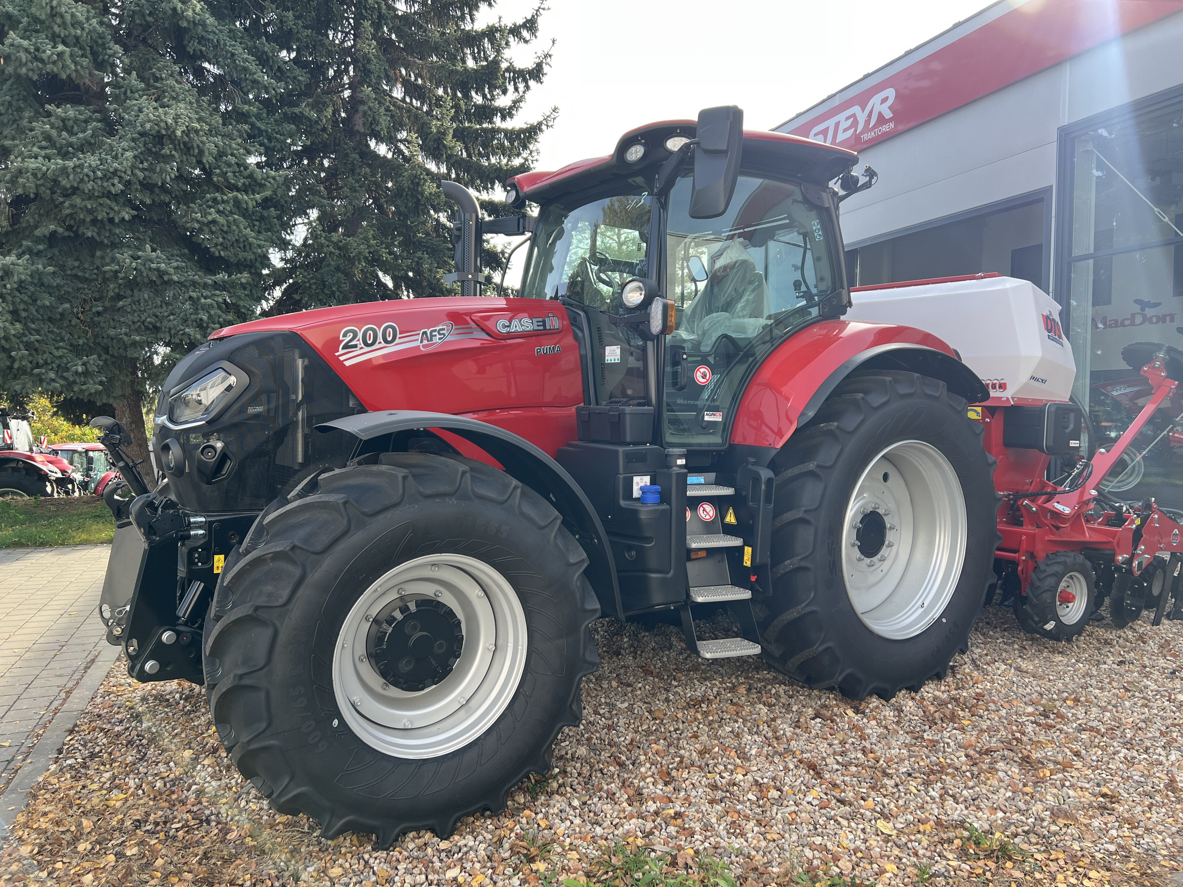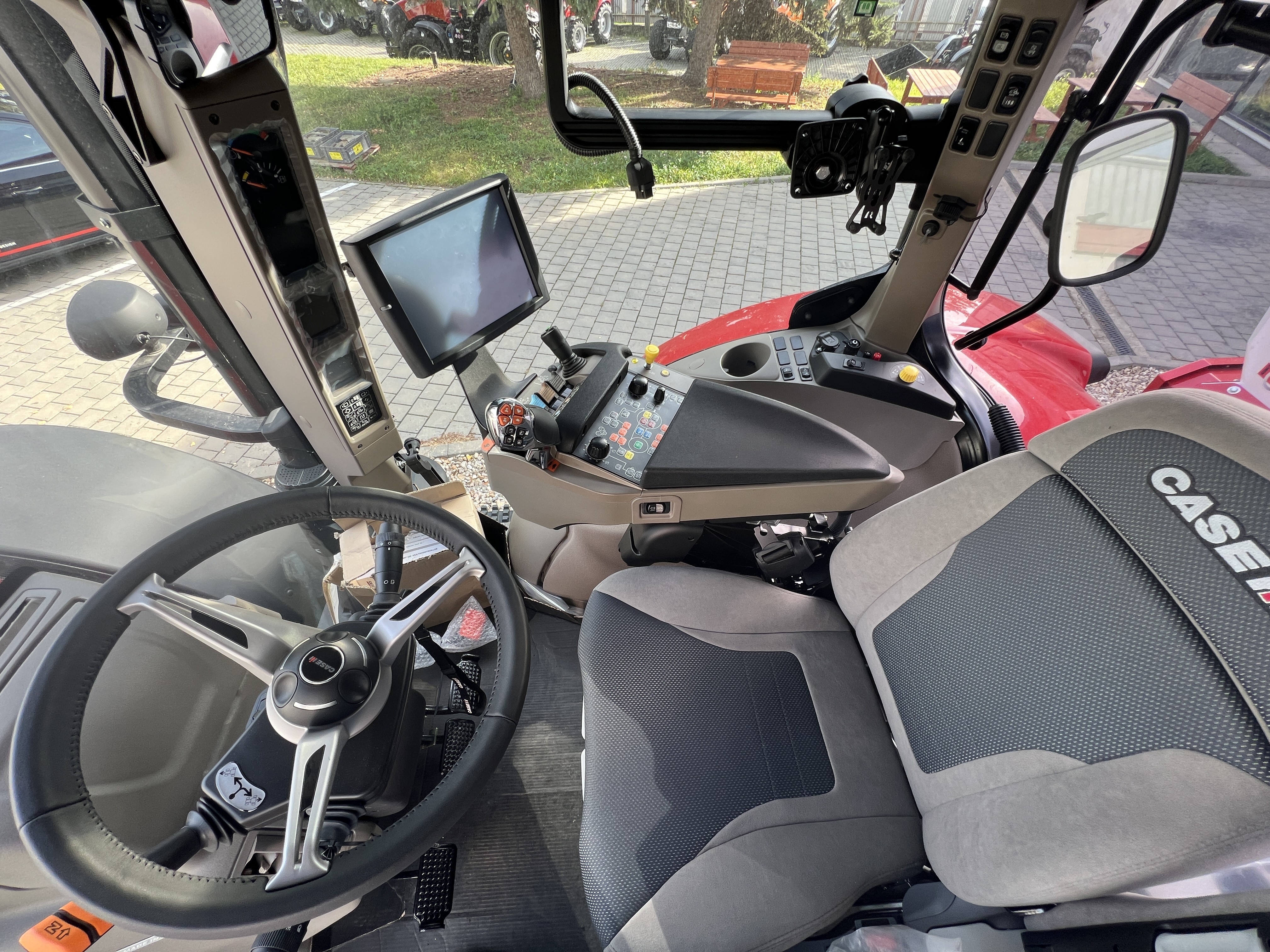 Nová ovládací loketní opěrka Multicontroller s multifukční pákou, sdružený ovladač Encoder s rychlým menu, barevný dotykový monitor AFS 1200 PRO, operační systém Vision Pro nastavení všech funkcí traktoru, barevný provozní monitor na A sloupku, konfigurovatelná ISO tlačítka. |