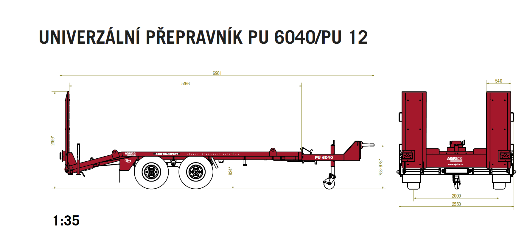 Výhodou je nižšia ložná plocha so zadnými sklopnými nájazdmi a podpernými nohami zaisťujúce stabilizáciu a ľahšie nakladanie a vykladanie. Pre maximálnu bezpečnosť a zaistenie prepravovaného stroja sú návesy po stranách vybavené viazacími okami, vzduchom ovládanú brzdou a v rámci príplatkovej výbavy je možné povrch opatriť aj protišmykovým náterom. Voliteľná výbava ďalej obsahuje možnosť vystuženia podlahy, navijak, LED osvetlenie alebo hydraulicky sklopné nájazdy. Maximálna povolená prepravná rýchlosť je 40 km/h.