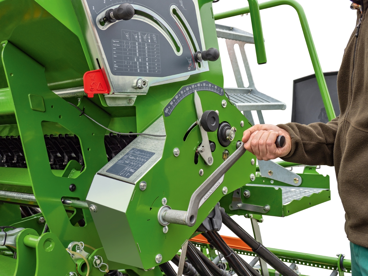Mechanický pohon ostruhovým kolesom je spoľahlivé a cenovo dostupné riešenie pre stroj CATAYA Special. Veľké ostruhové kolo garantuje rovnomerný a spoľahlivý pohon dávkovania. Obsluha stroja a monitorovanie koľajových riadkov sa realizuje cez terminál AMALOG+.